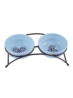 Двойная миска на подставке для собак и кошек 2*290 мл,Синяя