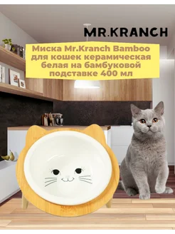 Миска для кошек на бамбуковой подставке 400 мл