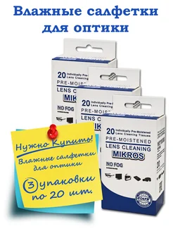 Салфетки влажные для очков MIKROS (Prosben) 3уп. по 20шт