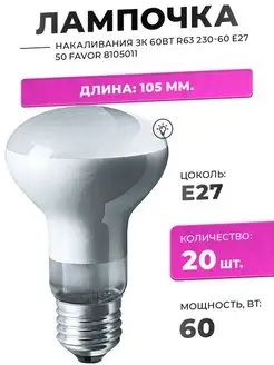 Лампа накаливания 60Вт E27 для освещения Уп-20 шт