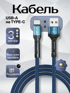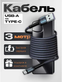 Кабель type-c USB 3 м быстрая зарядка нейлоновый Redmi Poco