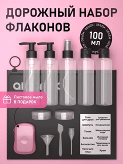 Дорожный набор флаконов и баночек для путешествий 100 мл