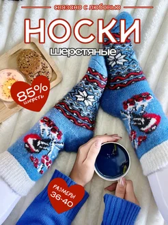 Носки теплые шерстяные домашние вязаные новогодние снегири