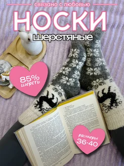 Носки теплые шерстяные домашние вязаные новогодние снеж кор