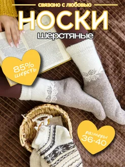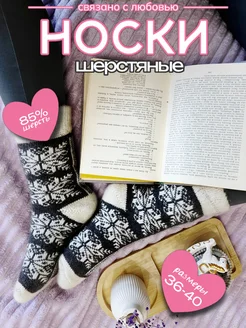 Носки теплые шерстяные домашние вязаные новогодние снежинки