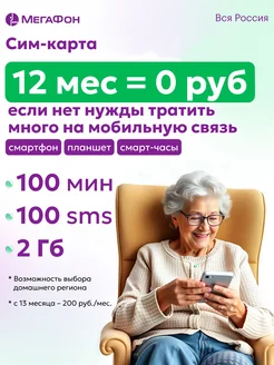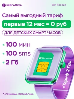 Сим карта МегaФон ГОД оплачен, 65 рублей в месяц, смарт часы
