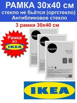 Рамка 30х40 см из IKEA белая с пластиковым стеклом ИКЕА 3 шт