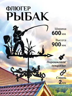 Флюгер на крышу садовый декор большой Рыбак, 600х900 мм