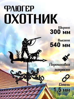 Флюгер на крышу садовый декор малый Охотник, 300х540 мм