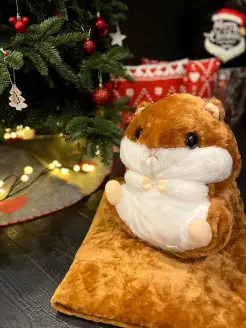 Мягкая игрушка 40см хомяк 3в1 с пледом внутри