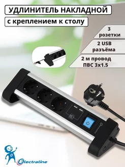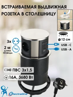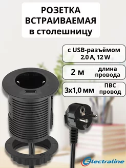 Розетка с USB встраиваемая в столешницу 2м настольная