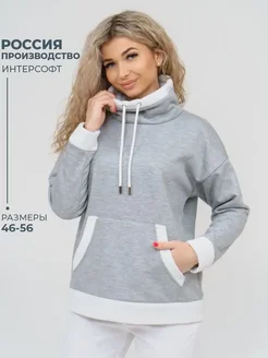 Толстовка с начесом теплая без капюшона однатонная