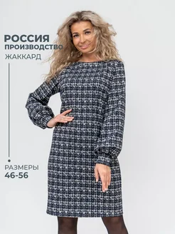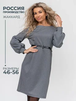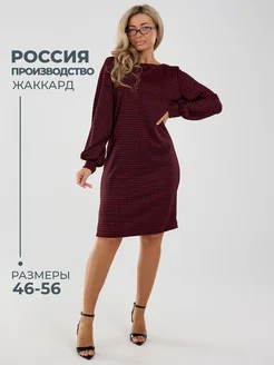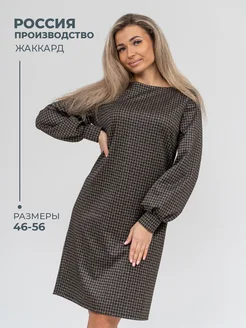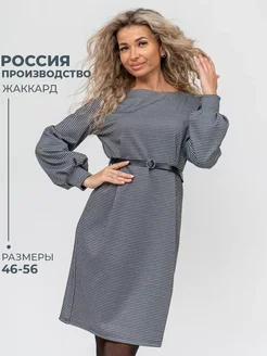 Платье женское офисное миди с рисунком длинный рукав жаккард