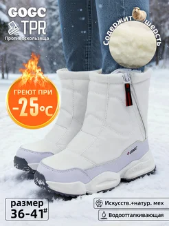 чёрные дутики зимние натуральный мех непромокаемые мембрана