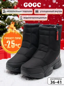 Дутики зимние высокие с мехом черные непромокаемые сапоги