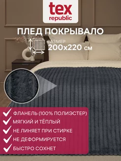 Плед 200х220 на диван кровать, плюшевый Рубчик