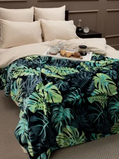 Плед 200х220 велсофт Люкс с принтом Тропики