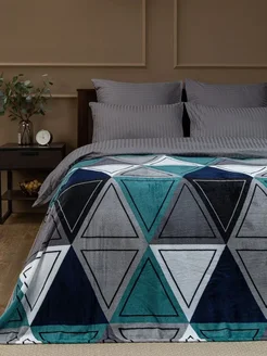Плед 200х220 велсофт Люкс с принтом Треугольники