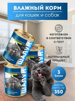 Корм влажный для кошек и собак Шалун 3 шт по 350 г