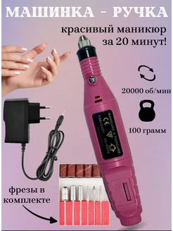 Маникюрная машинка, розовая, 20000 об*мин + набор насадок
