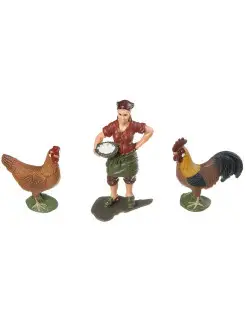 Набор фигурок Хозяйка фермы с курицей и петухом