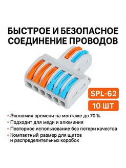 Клеммы для проводов 8 контактов, рычажковые, 10 шт