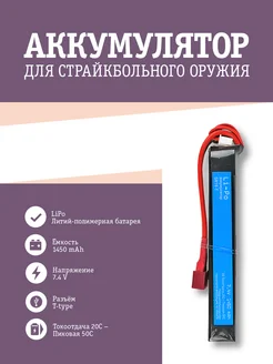 Аккумулятор Li-Po 7,4V 1450 mAh для страйкбола