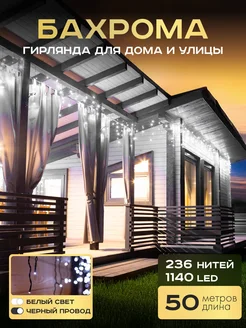 Гирлянда уличная бахрома новогодняя на стену 50м