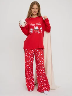 Новогодняя пижама оверсайз для подростка, с широкими штанами