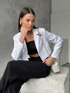 Пиджак женский оверсайз жакет укороченный в офис