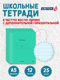 Тетрадь в косую линейку 12 листов с доп. Горизонт. 25шт