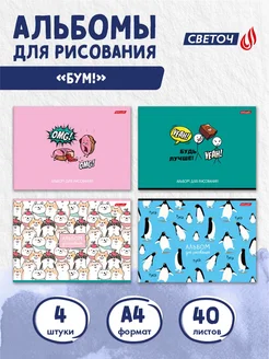 Альбом для рисования А4 на склейке 40 листов 4 шт Бум