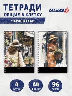 Тетрадь в клетку 96 листов на гребне 4 шт Красотка