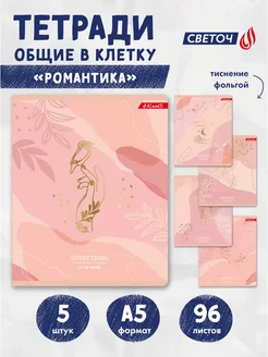 Тетрадь 96 листов в клетку 5 штук Романтика