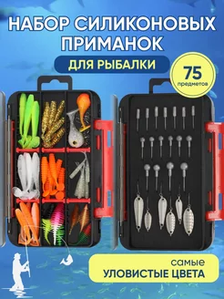 Набор силиконовых приманок и блесен для рыбалки
