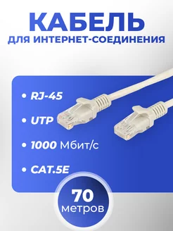 Интернет кабель 70м, коннектор rj45, cat 5e, UTP патчкорд