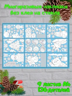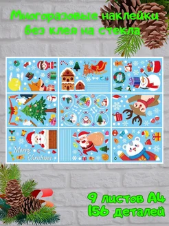 новогодние наклейки на окна многоразовые