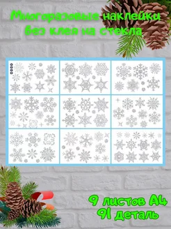 новогодние наклейки на окна многоразовые с блестками