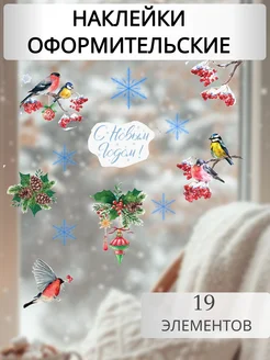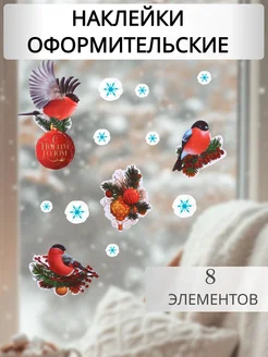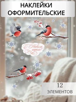 Новогодние наклейки на окна Снегири, декор, оформление 2026