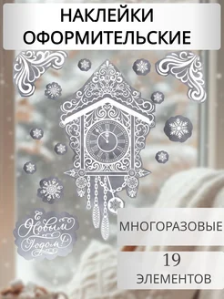 Новогодние наклейки на окна, многоразовые, часы новый год