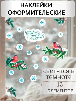 Новогодние наклейки на окна со светящимся слоем,снегири 2026