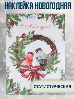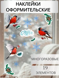 Новогодние наклейки на окно 2026 Снегири многоразовые