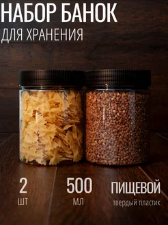 Банка пластиковая с крышкой для хранения 500 мл - 2 шт