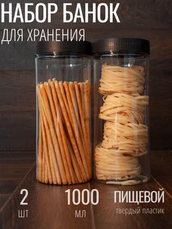 Банка пластиковая с крышкой для хранения 1000 мл - 2 шт