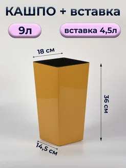 Кашпо для цветов комнатных 9 л квадратное + вставка 4,5л