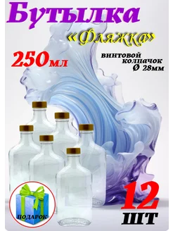 Бутылка стеклянная "Фляжка" 250мл- 12 шт