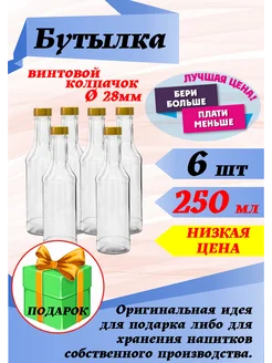Бутылка стеклянная "Водочная" 250мл- 6 шт
