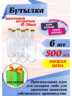 Бутылка стеклянная "Водочная" 500мл- 6 шт