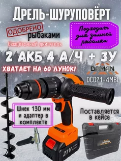 Дрель шуруповерт аккумуляторный DCD21-4MBL со шнеком 130мм