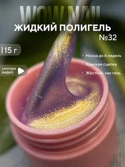 Жидкий полигель для укрепления ногтей цветной блестящий №32